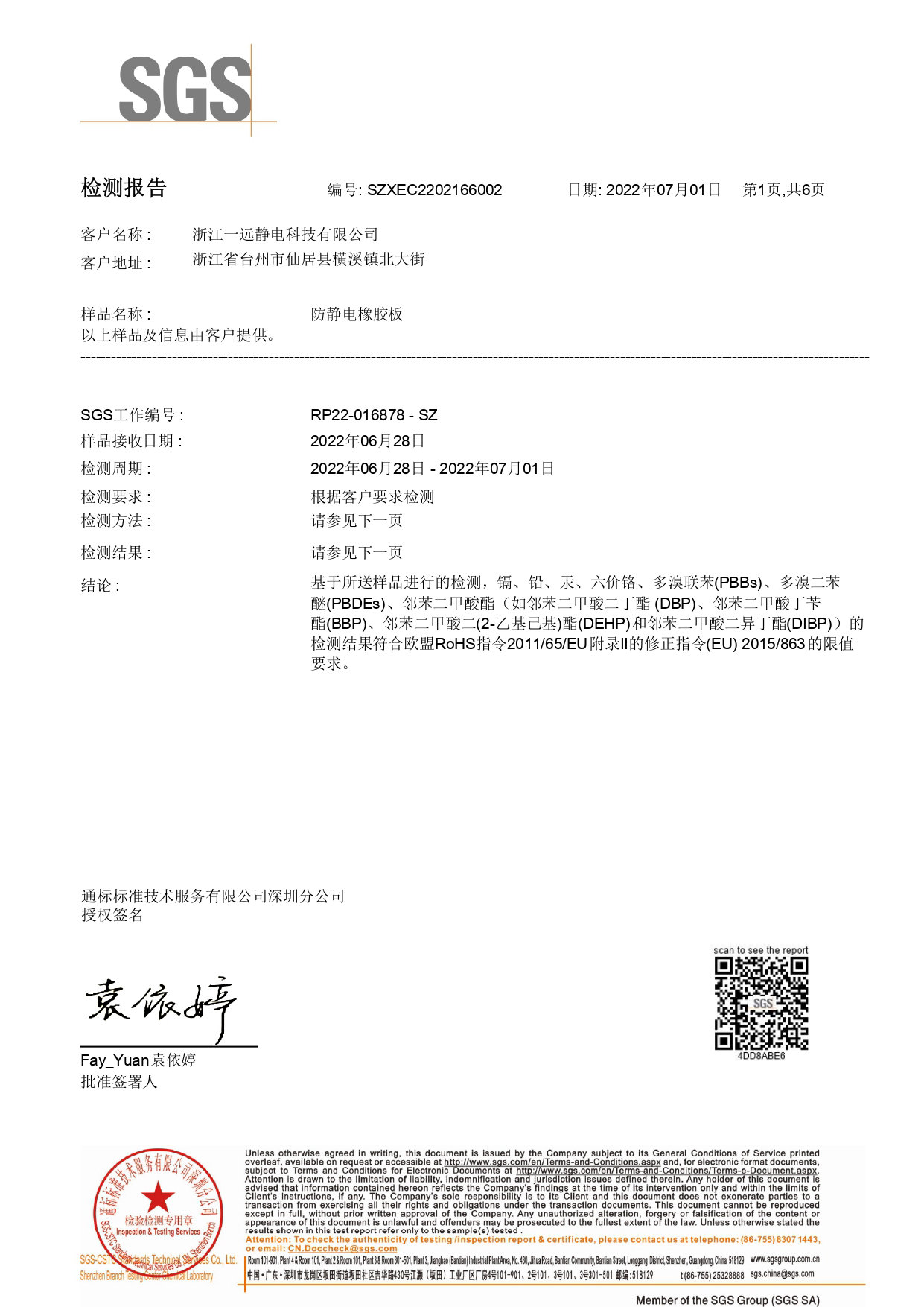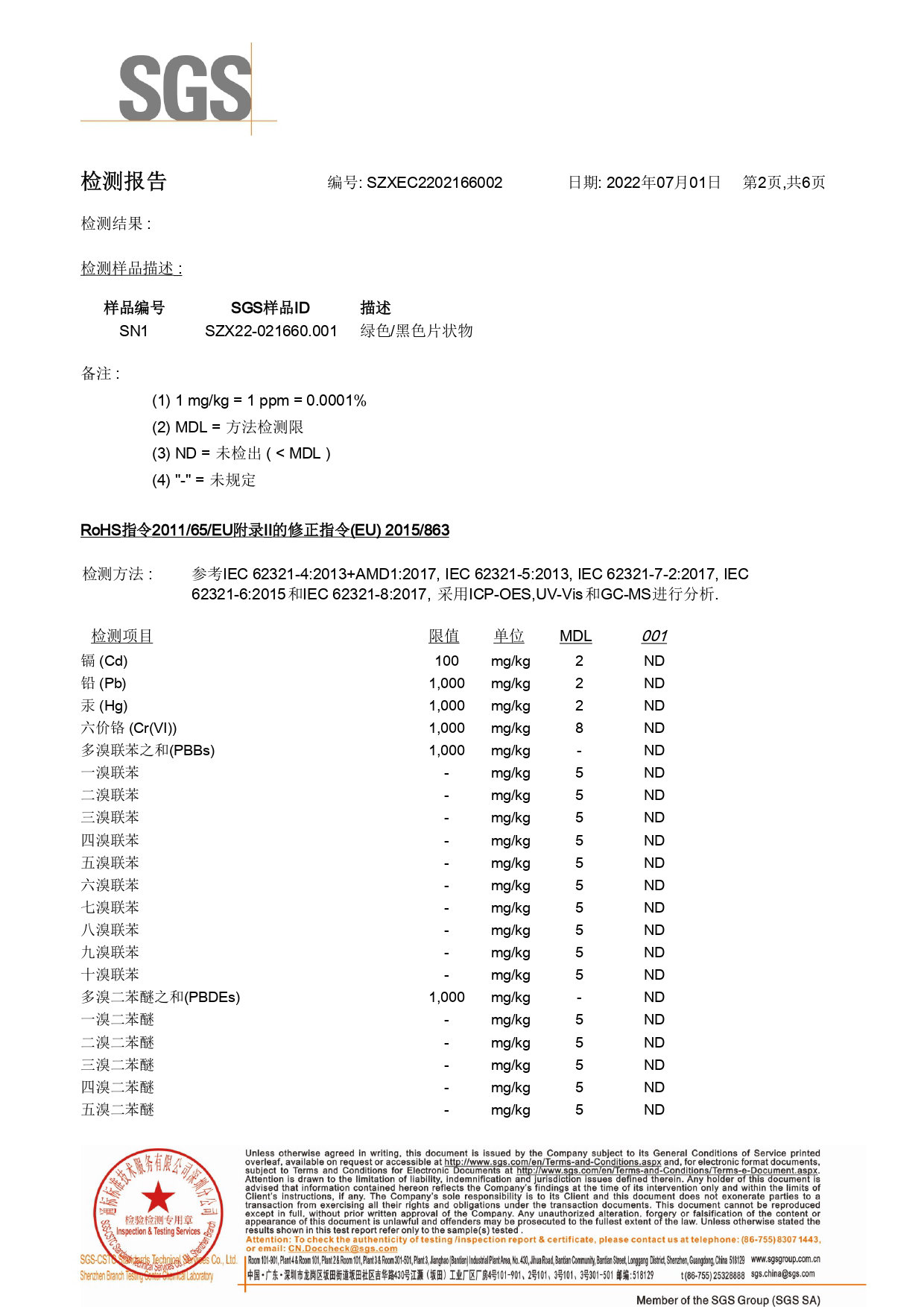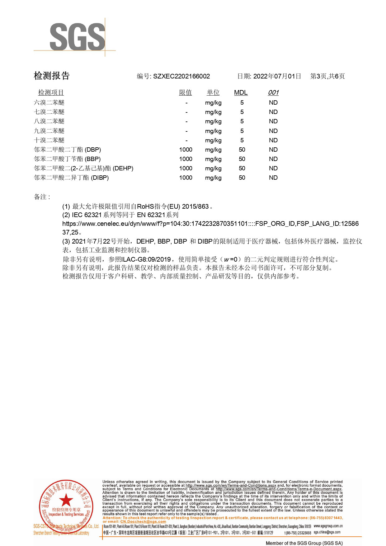 SGS检测报告