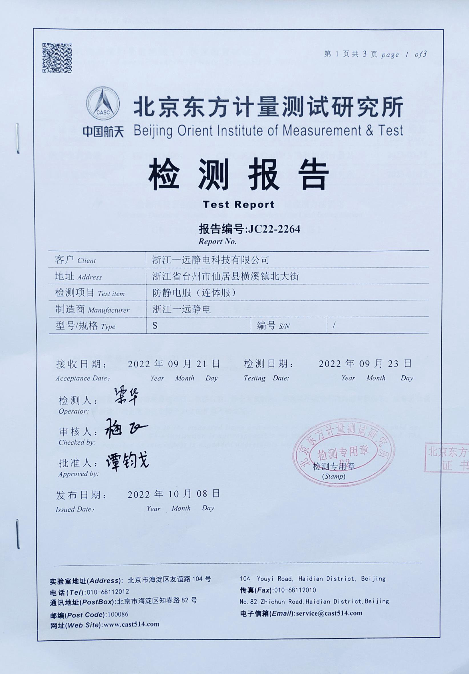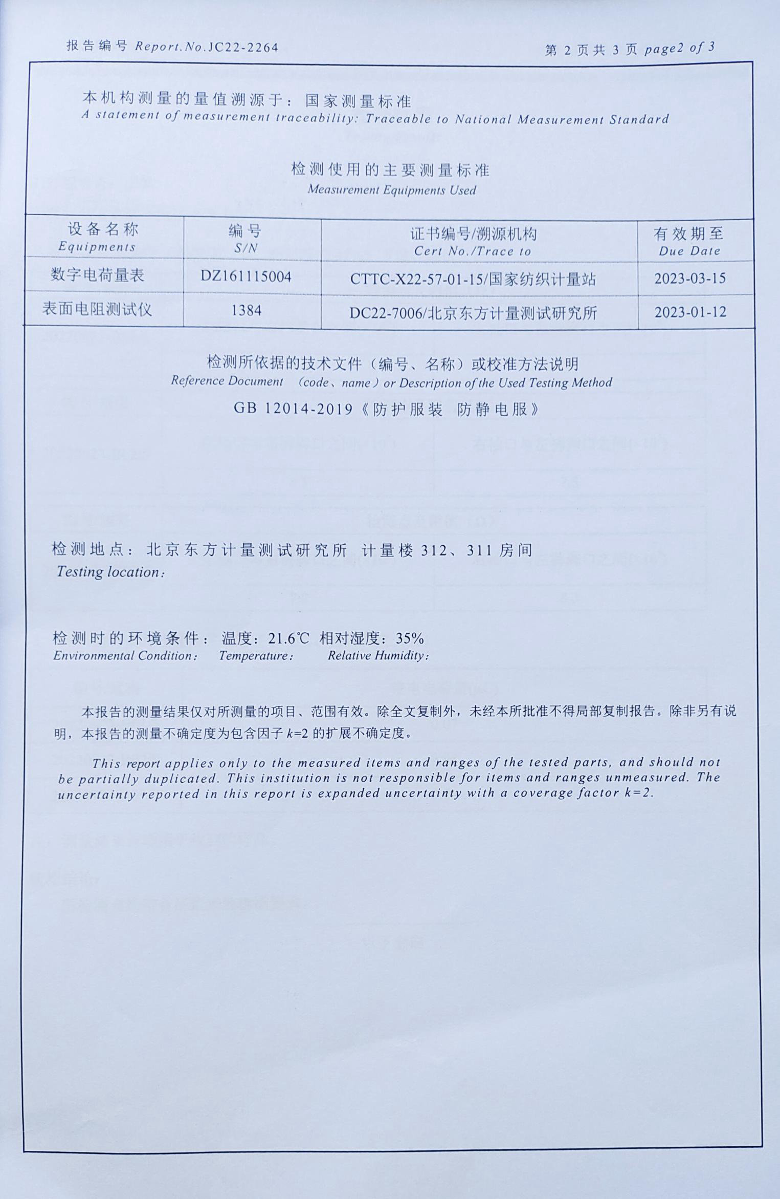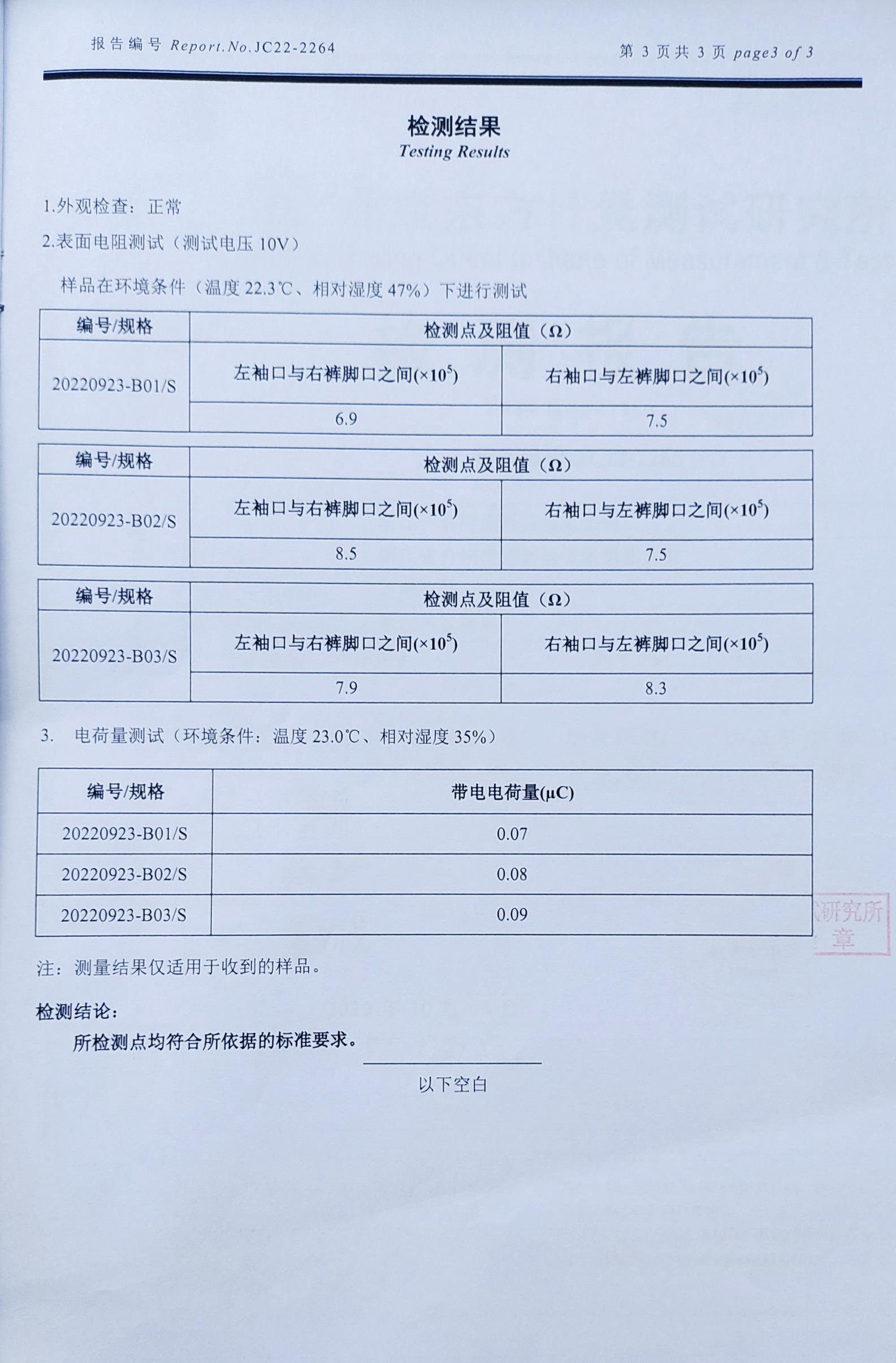 防静电服装检测报告