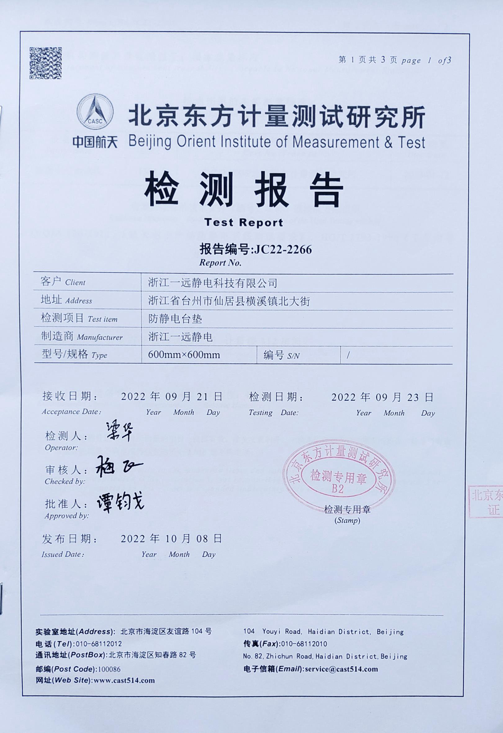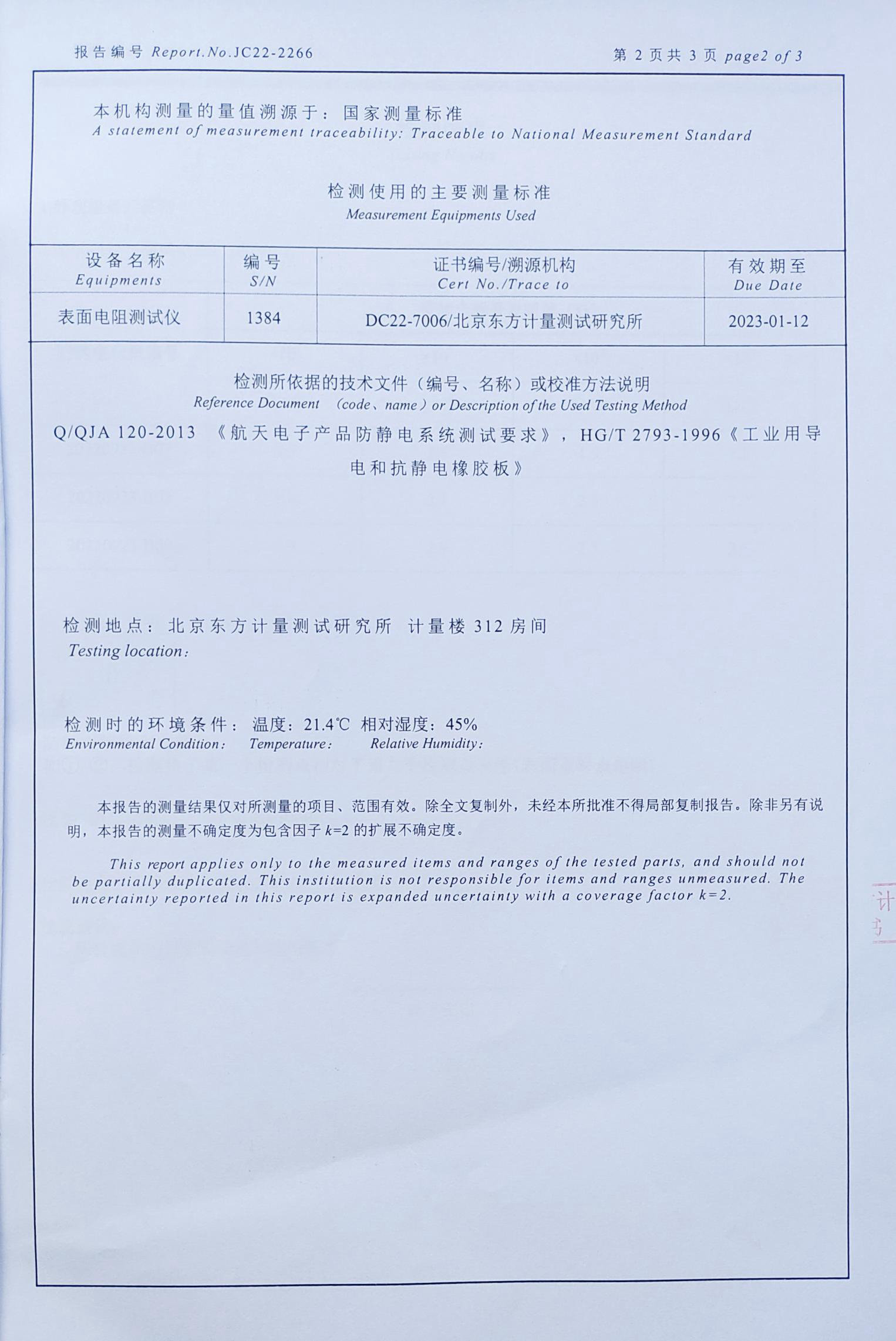 防静电台垫检测报告
